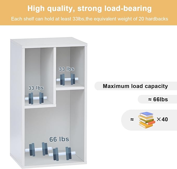 VECELO 3-Cube Open Bookcase, Small Bookshelf with Height Difference Shelves for Most Books, Horizontal Available, 2-Tier Storage Organizer for Home Office, Living Room, Pearl White