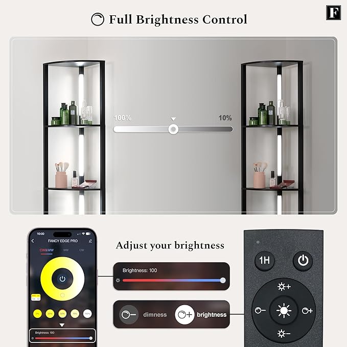 FENLO Fancy - LED Display Shelf with Dimmable Lights, LED Shelf Floor Lamps for Living Room, Sturdy Corner Shelf Curio Cabinet Display, Tall Floor Lamps with Shelves