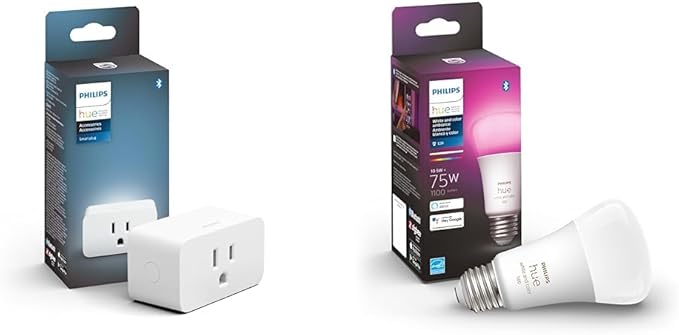 Philips Hue Smart Plug, White - 1 Pack - Turns Any Light Into a Smart Light - Control with Hue App & Smart 75W A19 LED Bulb - White and Color Ambiance Color-Changing Light - 1 Pack