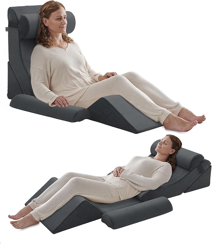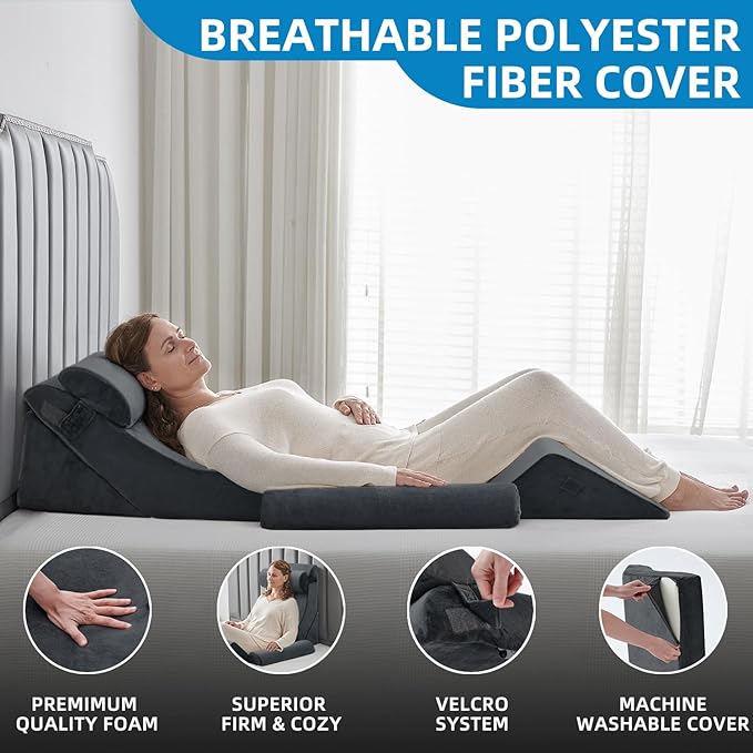 Axelrod 6PCS Orthopedic Bed Wedge Pillow Set, Post Surgery Foam for Back, Neck & Leg Pain Relief Comfortable & Adjustable Ortho Pillows- Anti Snoring, Heartburn, Acid Reflux & GERD Sleeping Dark Grey