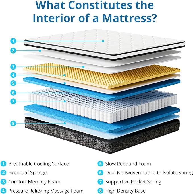About This 【7 Zones Spring Supportive】Discover the innovative support of EvaStar Home's king-size mattress, featuring 7 zoned individual encased coils...