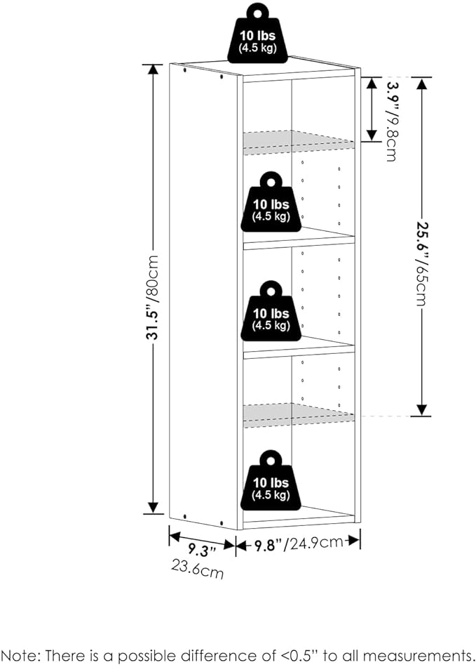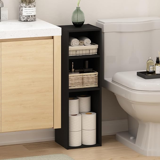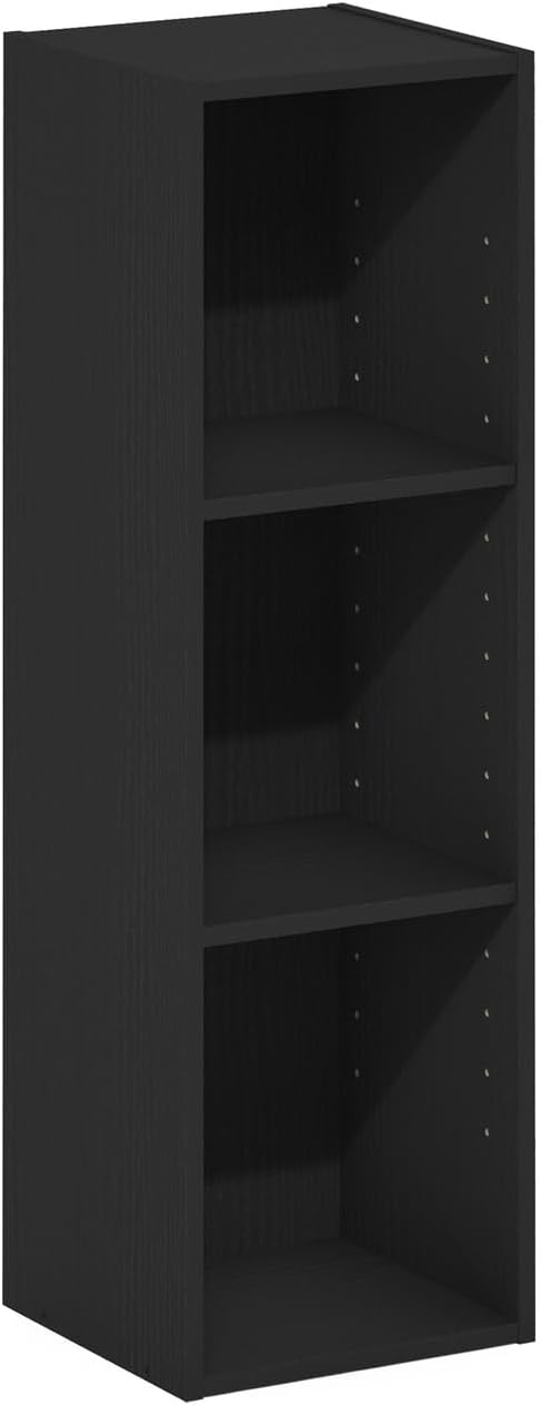 Furinno Fulda 3-Tier Space Saving Storage Shelf Bookcase, 10-Inch Width, Blackwood