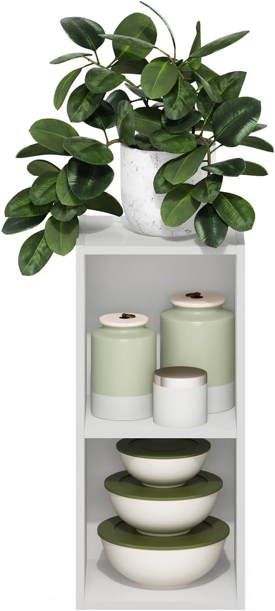 Furinno Fulda 2-Tier Space Saving Storage Shelf Bookcase, 10-Inch Width, White