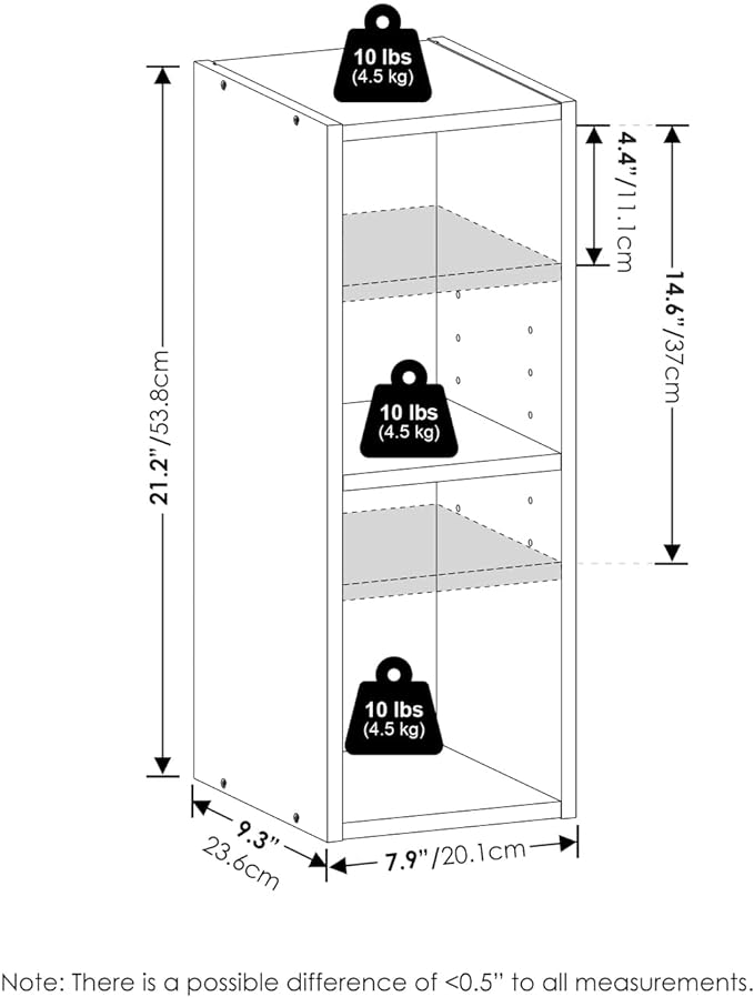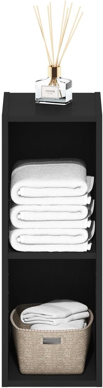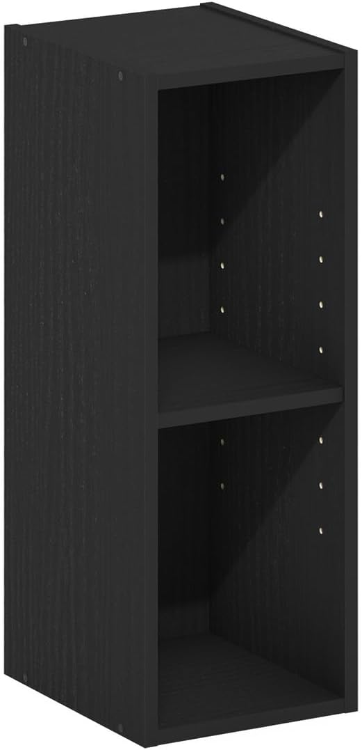 Furinno Fulda 2-Tier Space Saving Storage Shelf Bookcase, 8-Inch Width, Blackwood