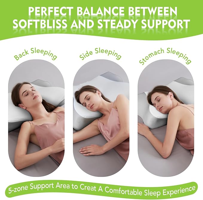 Cervical Pillow for Bed Sleeping, Memory Foam Contour Neck Pillows with Breathable Pillowcase, Ergonomic Neck Support Pillows for Side, Back and Stomach Sleepers