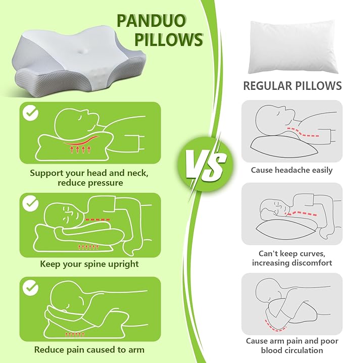 About This Our neck pillow uses ergonomics to combine traditional bed pillows and contour pillows. The hollow center supports the...