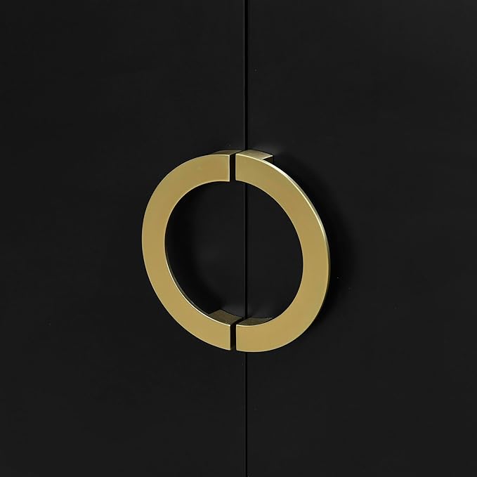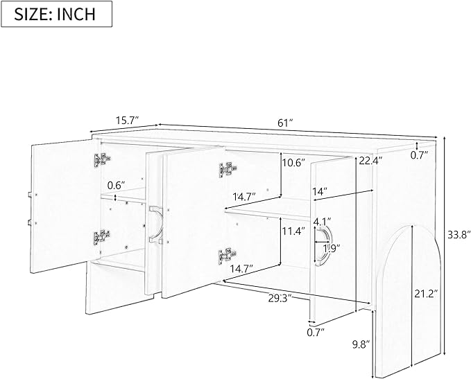 61" Storage Cabinet Sideboard with Four-Door Metal Handle & Adjustable Partitions,Wooden Console Table,w/Curved Legs and Ample Space Desktop,for Living Room,Black