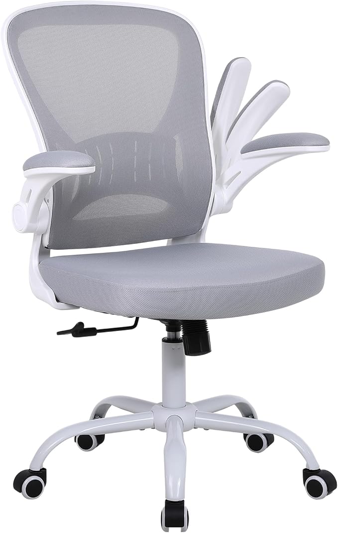 Mesh Office Chair, Ergonomic Computer Chair with Flip-up Arms and Lumbar Support, Height Adjustable Home Office Desk Chairs, Grey