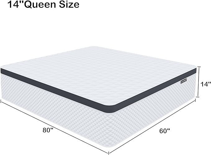 Queen Mattress,14 Inch Queen Size Mattress in a Box,Gel Memory Foam and Innerspring Hybrid Mattress with Individual Pocket Spring for Motion Isolation,Pressure Relief,Medium Firm Feel