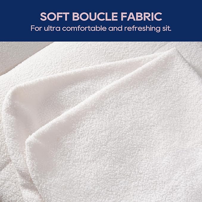 About This SOFT BOUCLE FABRIC: The Nora cream white boucle love seat simple and sleek silhouette makes this a timeless...