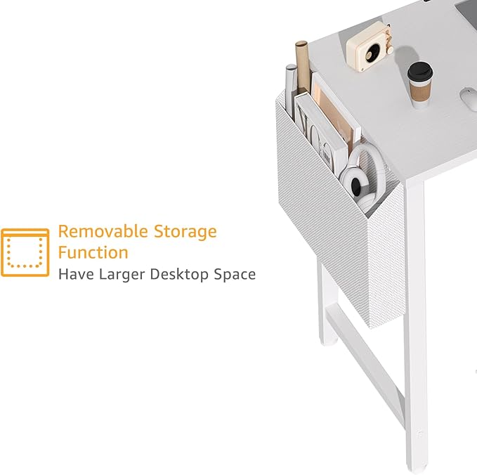 White L Shaped Computer Desk with Power Outlet Shelves, 40 Inch Small Corner Desk for Small Space Home Office, Study Work PC Desks for Bedroom, White