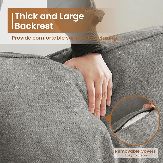 COHOME 88" Loveseat Sofa with Deep Seat, Modern Chenille Love Seat Couch for Living Room with Removable Covers, Upholstered 2-Seater Small Couch for Bedroom, Apartment,Grey