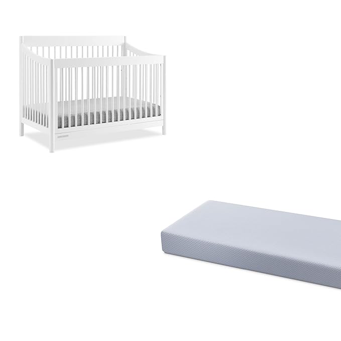 Delta Children Brooks 6-in-1 Convertible Crib, Bianca White + Simmons Kids Quiet Nights Breathable Crib Mattress with Removable/Machine Washable Cover (Bundle)
