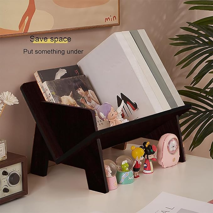 Wood Bookcase in Living Room/Home/Office, Desktop Book Shelf Organizer Bookshelves Storage Rack for CDs/Magazine/Books Display (Brown, 13.6")