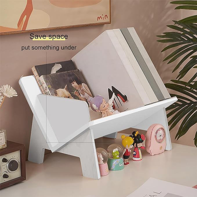 Wood Bookcase in Living Room/Home/Office, Desktop Book Shelf Organizer Bookshelves Storage Rack for CDs/Magazine/Books Display (White, 13.6")