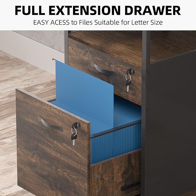 About This ✔️👍【2 DRAWER FILE CABINET & OPEN SHELVES】This 2 drawer filing cabinet features open storage spaces along with 2...
