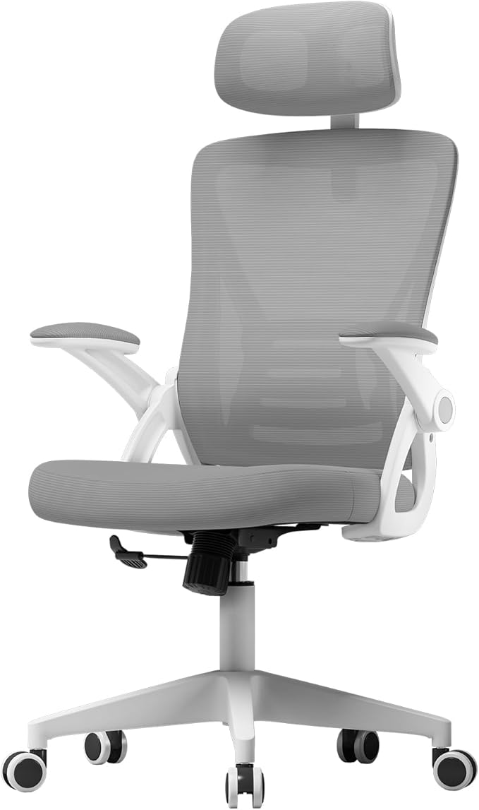 Ergonomic Office Chair, Mid Back Desk Chair with Adjustable Height, Swivel Chair with Flip-Up Arms and Lumbar Support, Breathable Mesh Computer Chair with Headrest (White and Grey)