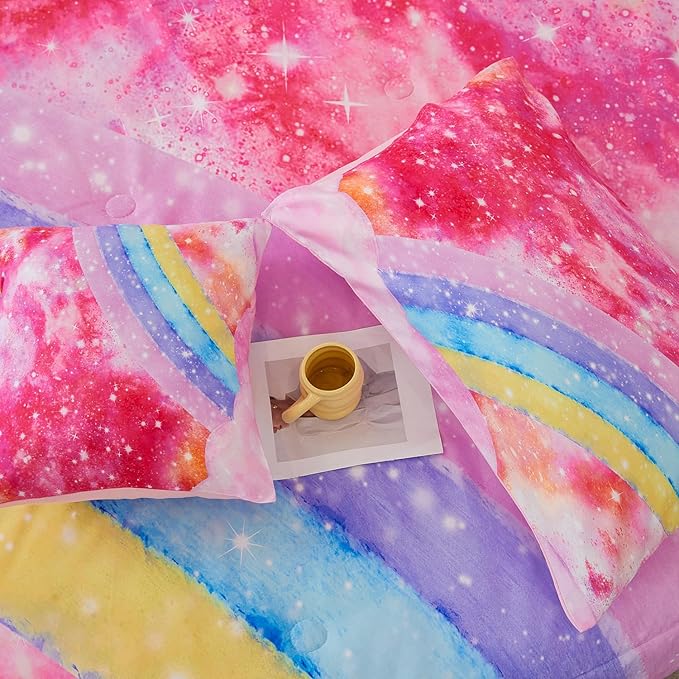 About This [MATERIAL]: The rainbow girls bed set is made of premium quality brushed microfiber material with soft microfiber inner...