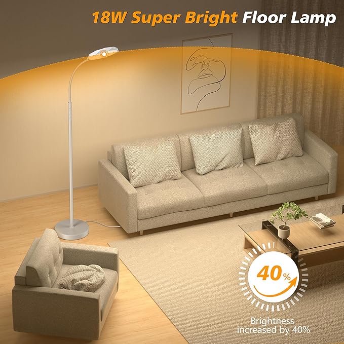 Floor Lamp, 18W Bright LED Floor Lamps for Living Room with Diamond-Surface, Stepless Adjustable Colors & Dimmer Standing Lamp with Timer, Remote & Touch Control, Reading Lights for Bedroom, Office