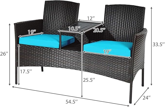 About This 【Cozy and Ergonomic Design】For your comfort, this wicker set comes with two thick cushions(pillow not included) that is...