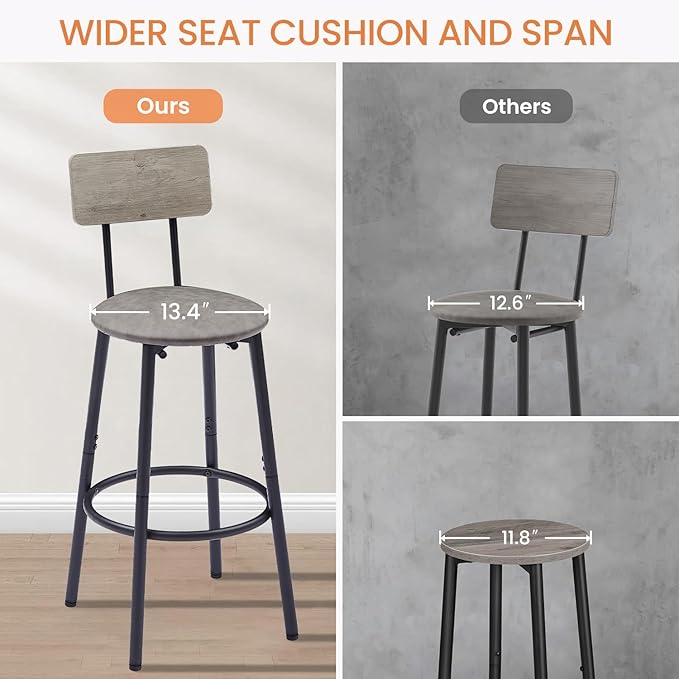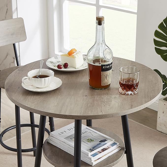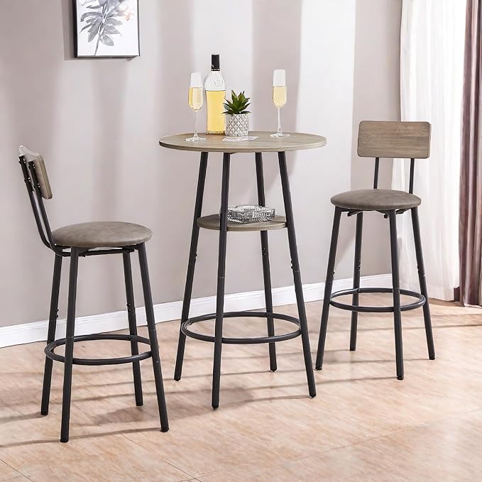 NicBex Kitchen Table Set Modern Dining Table Set Small Dining Table for 2 Round Bar Stool Set with Shelf, Upholstered Stool with Backrest for Dining Room, Dinette, Compact Space, Grey