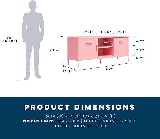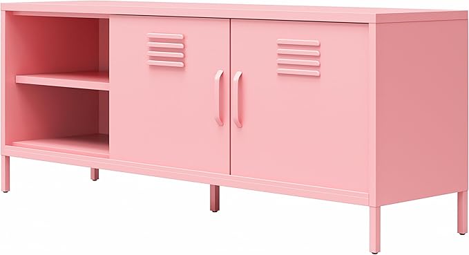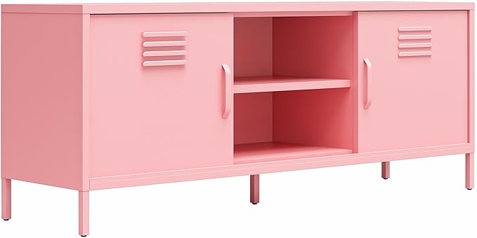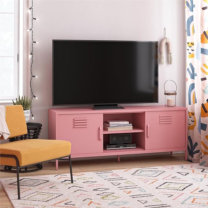 Novogratz Cache Metal Locker-Style TV Stand for TVs up to 65", Bashful Pink