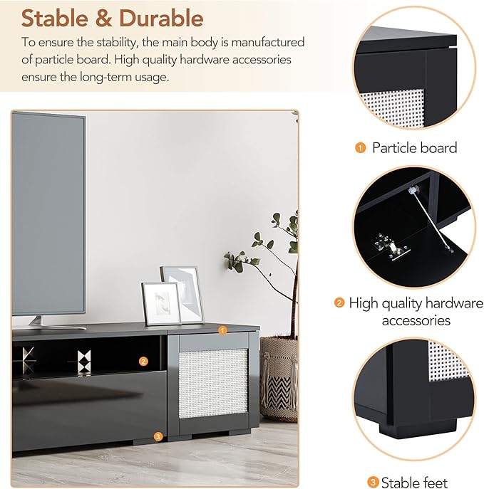 About This Particle Board đșăModern & Stylish TV StandăThis modern TV stand cabinet features a clean black and gray design...