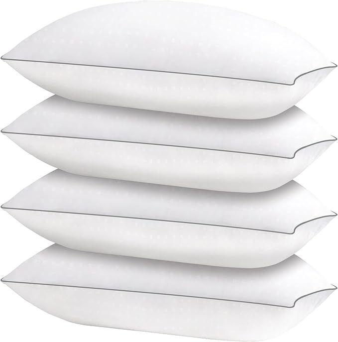 HIMOON Bed Pillows for Sleeping 4 pack,King Size Cooling Pillows Set of 4,Top-end Microfiber Cover for Side Stomach Back Sleepers(Grey Edge)