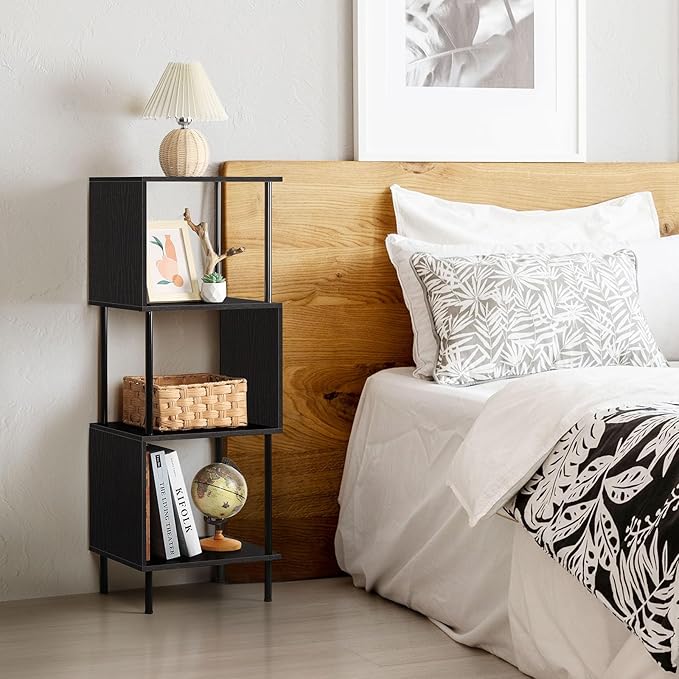smusei 4 Tier Bookshelf for Small Spaces Narrow Black Bookcase Organizer S-Shaped Wood Corner Bookshelves for Bedroom, Study Room, Living Room and Home Office