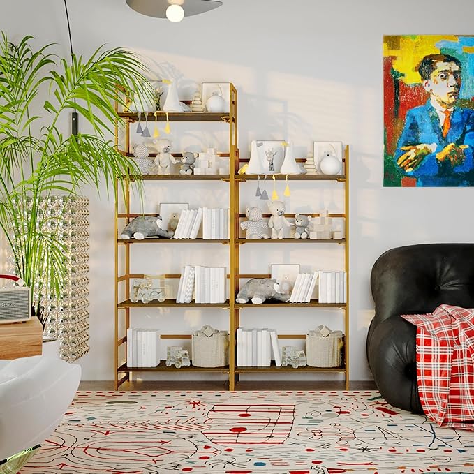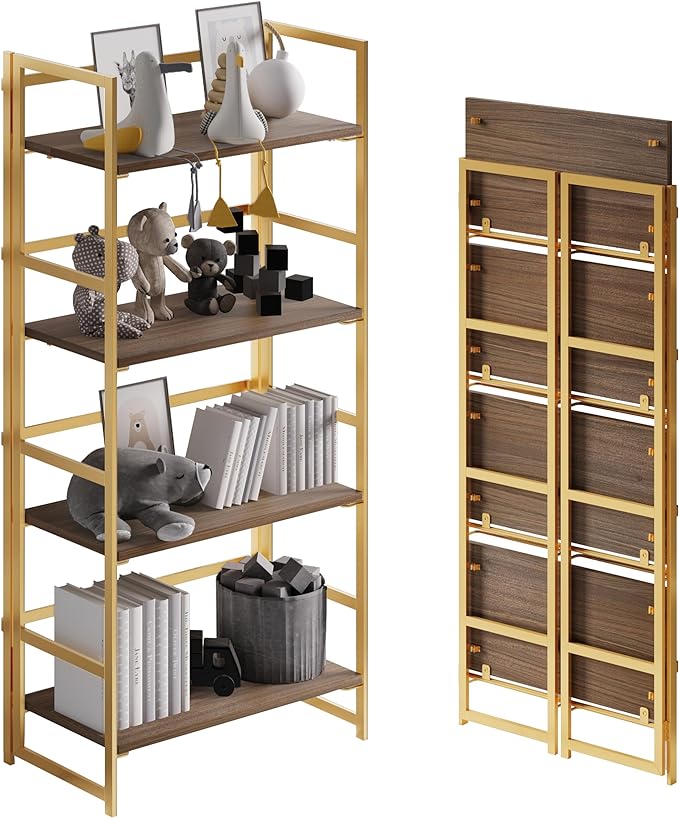 No-Assembly Folding Gold Bookshelf Storage Shelves 4 Tiers Vintage Multifunctional Plant Flower Stand Storage Rack Shelves Bookcase for Home Office