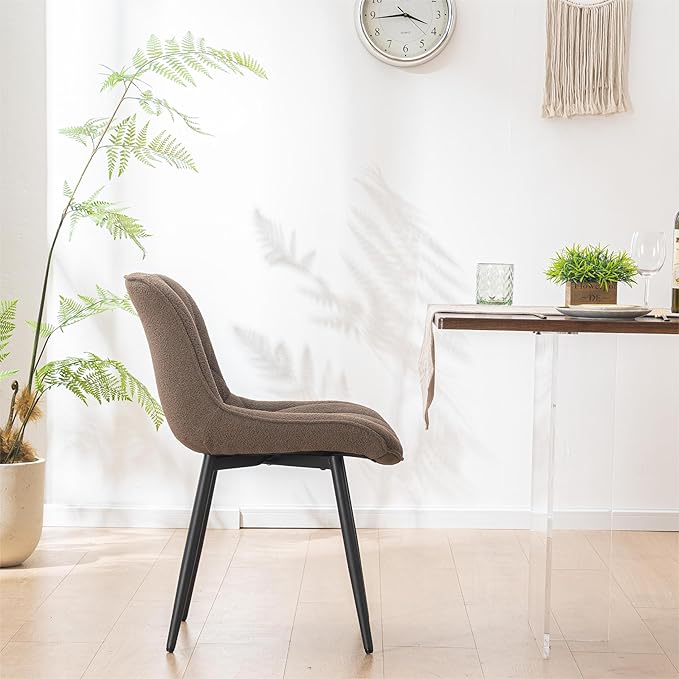 Dining Chair Set of 2 Soft Padded Seats & Adjustable Metal Legs, Modern Velvet Dining Room Chairs, Kitchen Chairs with Wide Curved Back for Living Room Bedroom Kitchen, Coffee