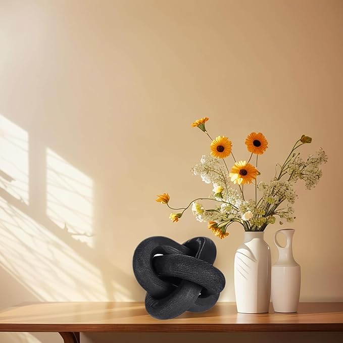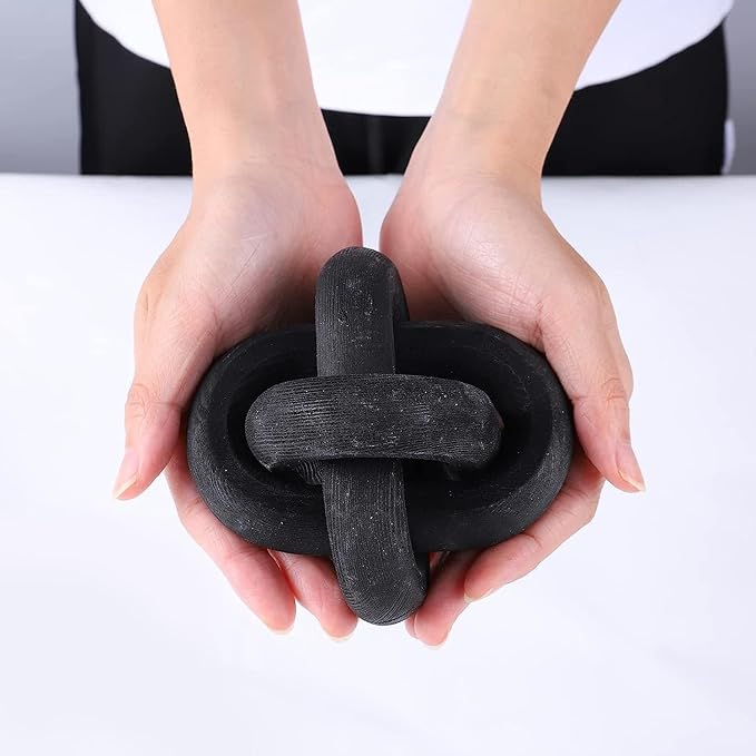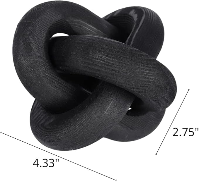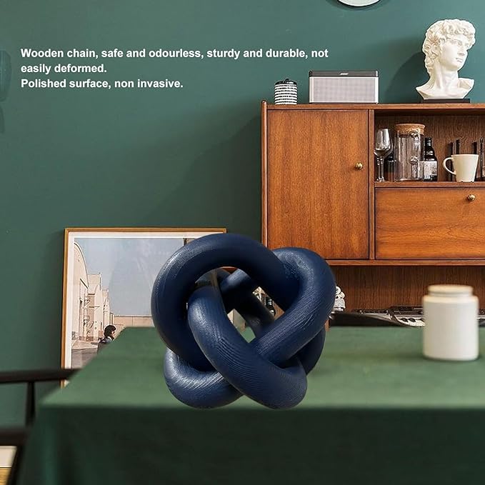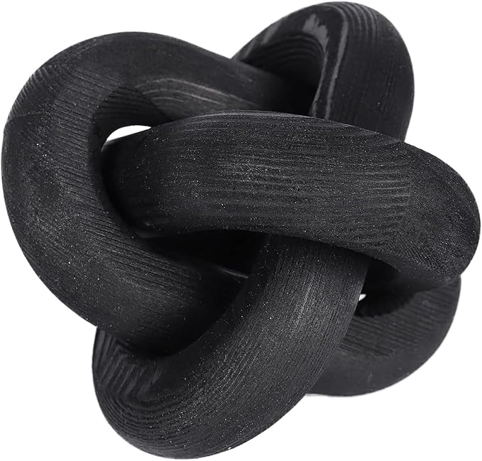 Wood Knot Decor -Coffee Table Decor Shelf Decor Table Books Hand Carved Home Decoration Boho Country Rustic Modern Shabby Chic Style Decor 3 Link Wooden Knot Chain Link Decor (Black)