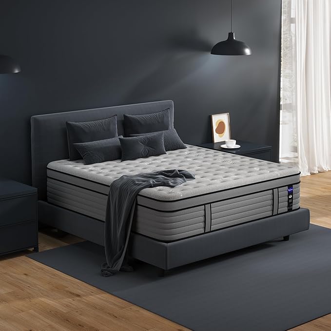 Queen Size Mattress, 14 Inch Hybrid Queen Mattress in a Box with Memory Foam, Individually Pocket Coils Spring Mattress, Pressure Relief, Edge Support, Breathable Fabric, Medium Firm