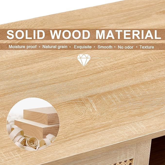 About This 【Mid Century Retro Style】The natural wood color with rattan woven design make this rectangular coffee table naturally rustic...