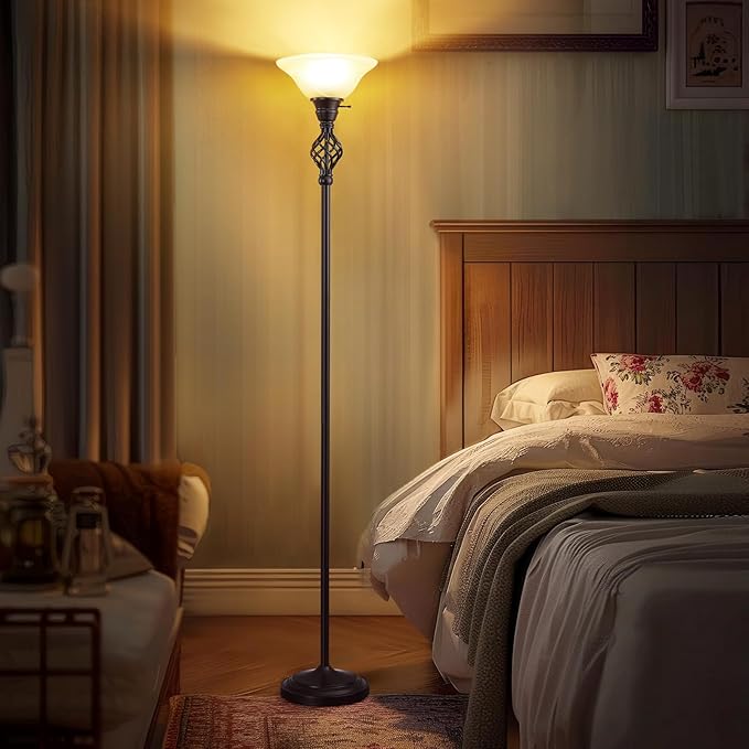 Victorian Floor Lamp, Standing Lamp with Glass Bowl Shade, Torchiere Floor Lamp with Metal Body & Heavy Base, 72-Inch Floor Lamp Decor for Living Room Bedroom Den Office (Bulb Included)