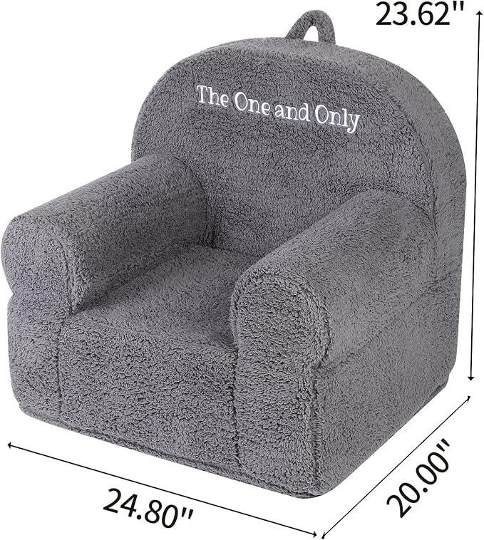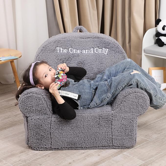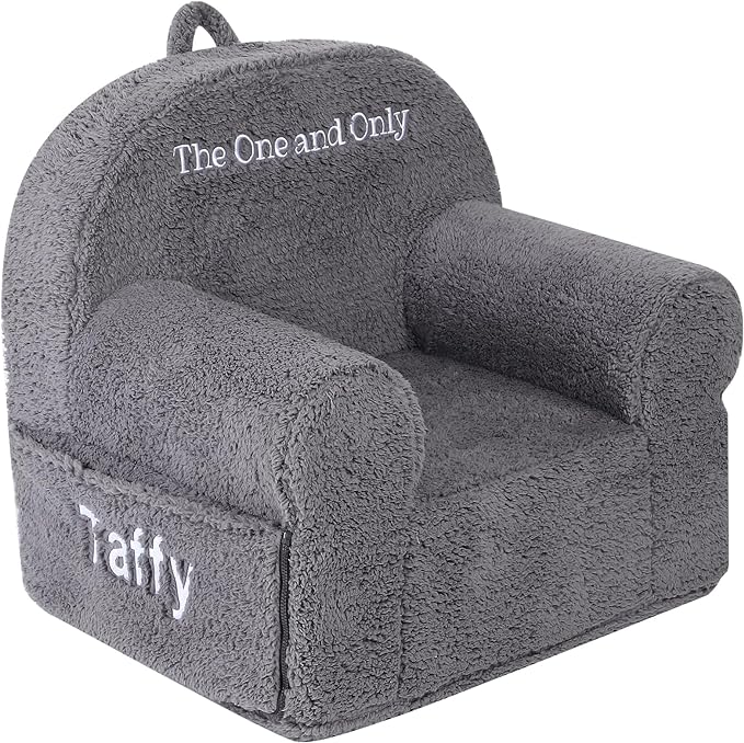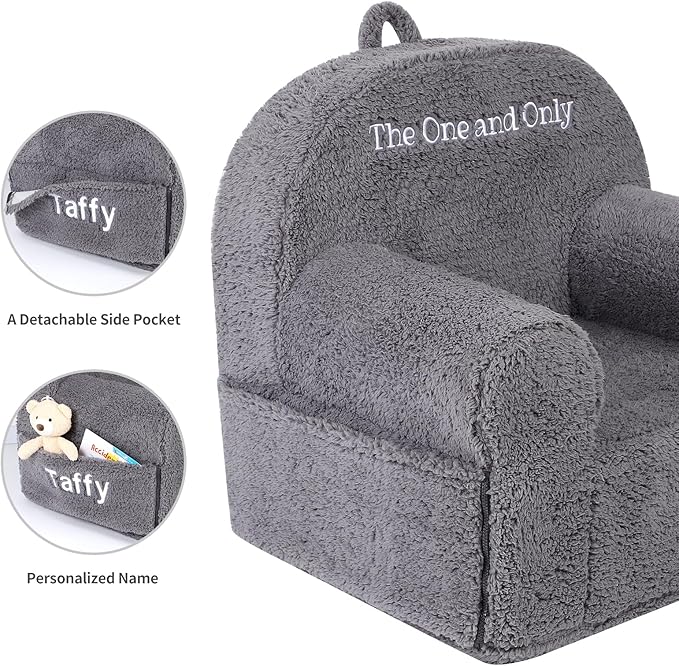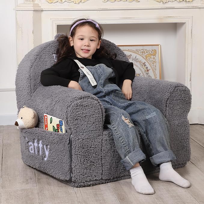 Personalized Kids Chair, High Back Toddler Sherpa Chair, Customize with Name, Grey