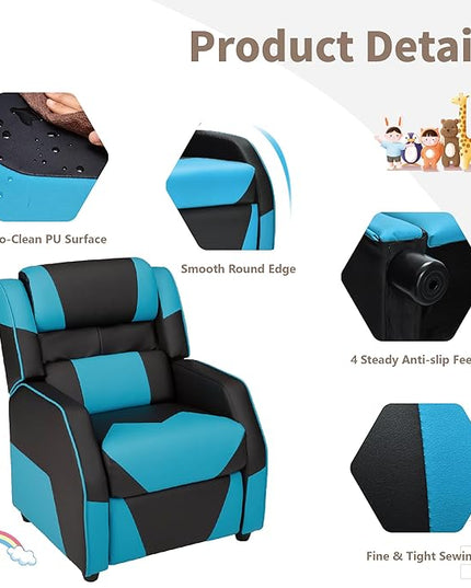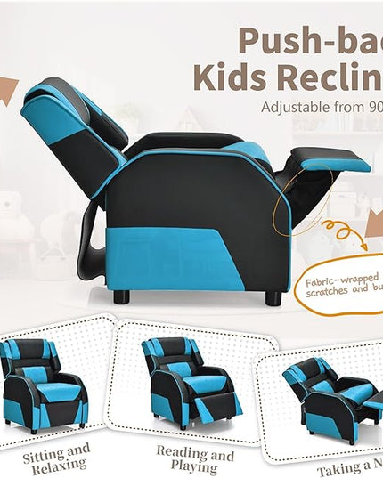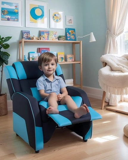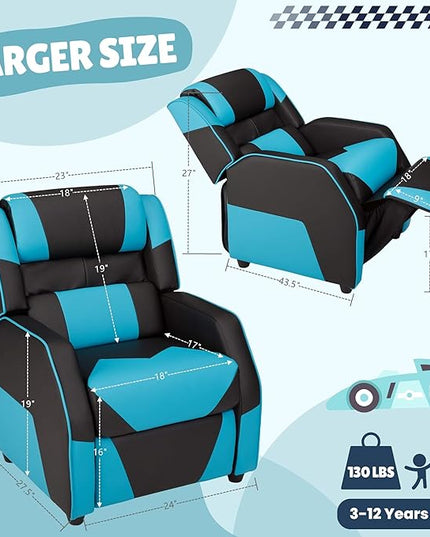 RACER Larger Kids Gaming Chair Leather Recliner Sofa Children Ages 3-12, BlackBlue