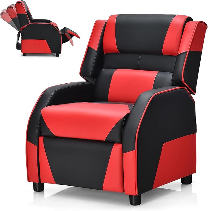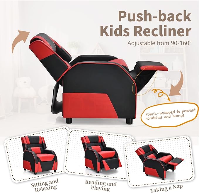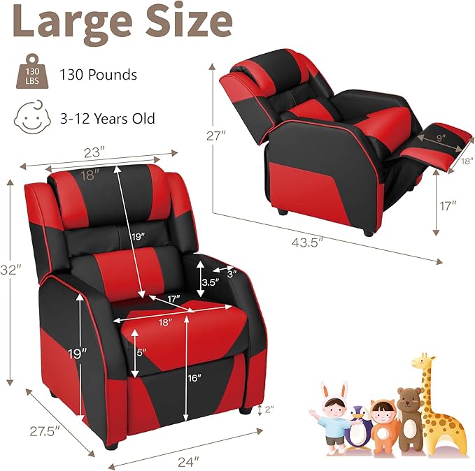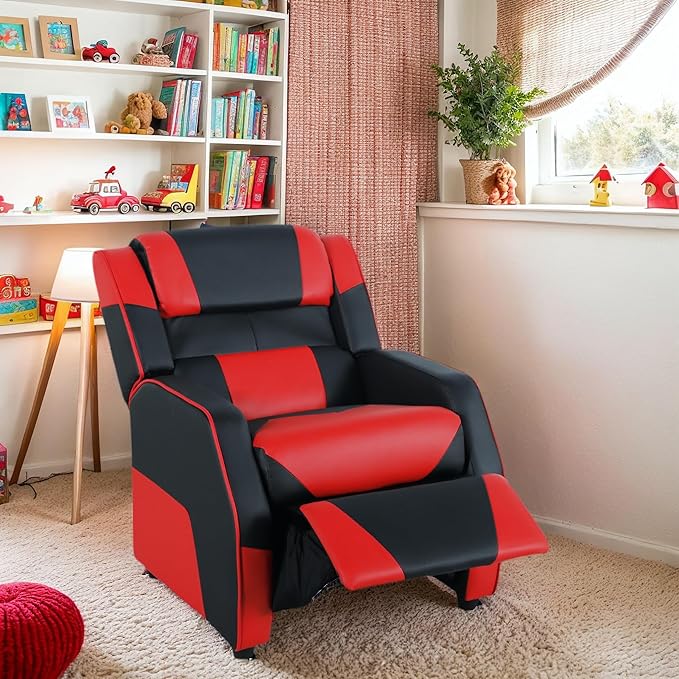 RACER Larger Kids Gaming Chair Leather Recliner Sofa Children Ages 3-12, BlackRed