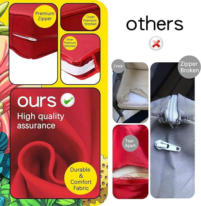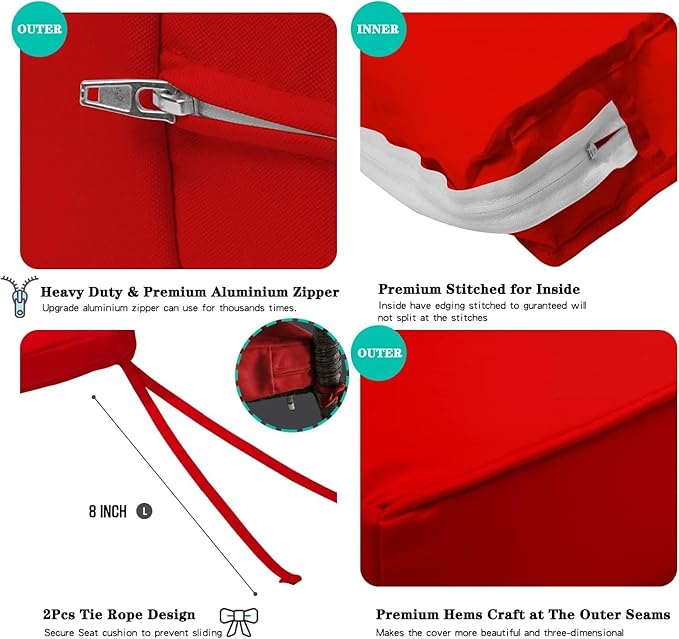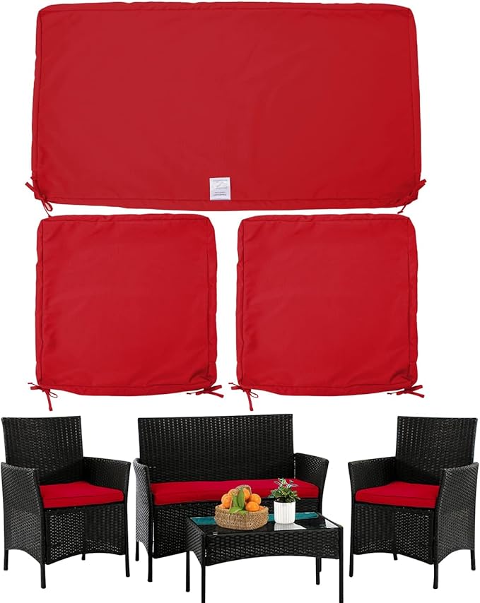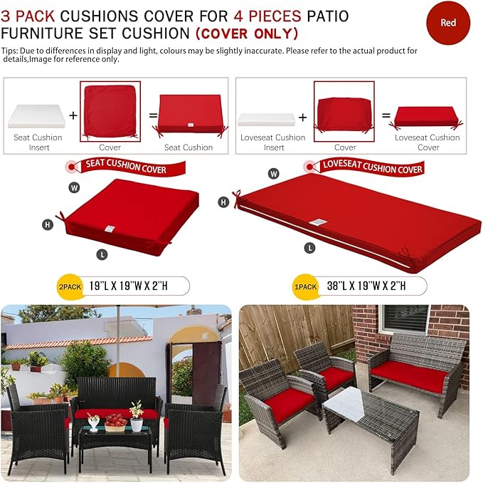 ClawsCover 3Pack Outdoor Seat Cushions Replacement Covers Fit for 4 Pieces Wicker Rattan Furniture Patio Conversation Set Loveseat Chair,38x19x2,19x19x2,Red-Large (Include Cover Only)