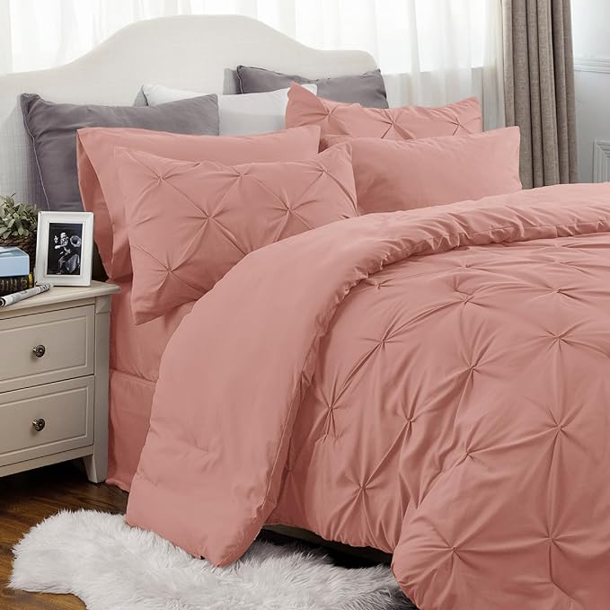 Bedsure Comforter Set Queen - Bed in a Bag Queen 7 Pieces, Bedding Sets Bed Set with Comforter, Sheets, Pillowcases & Shams (Dusty Pink)