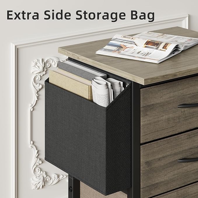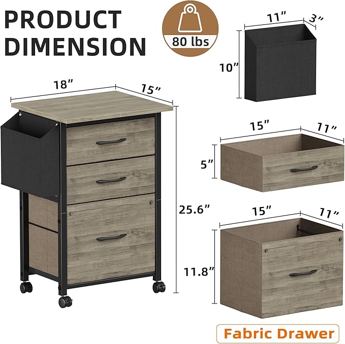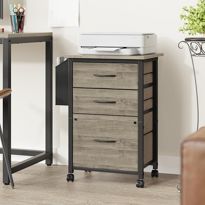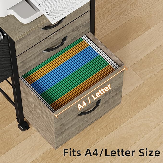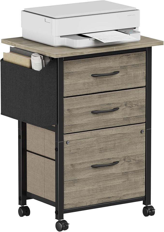 3 Drawer File Cabinet with 18'' Extended Board, Fabric Drawer, Mobile Filing Cabinet Fits A4/Letter Size Files, Rolling Printer Stand with Storage Bag, File Cabinet for Home Office, Grey