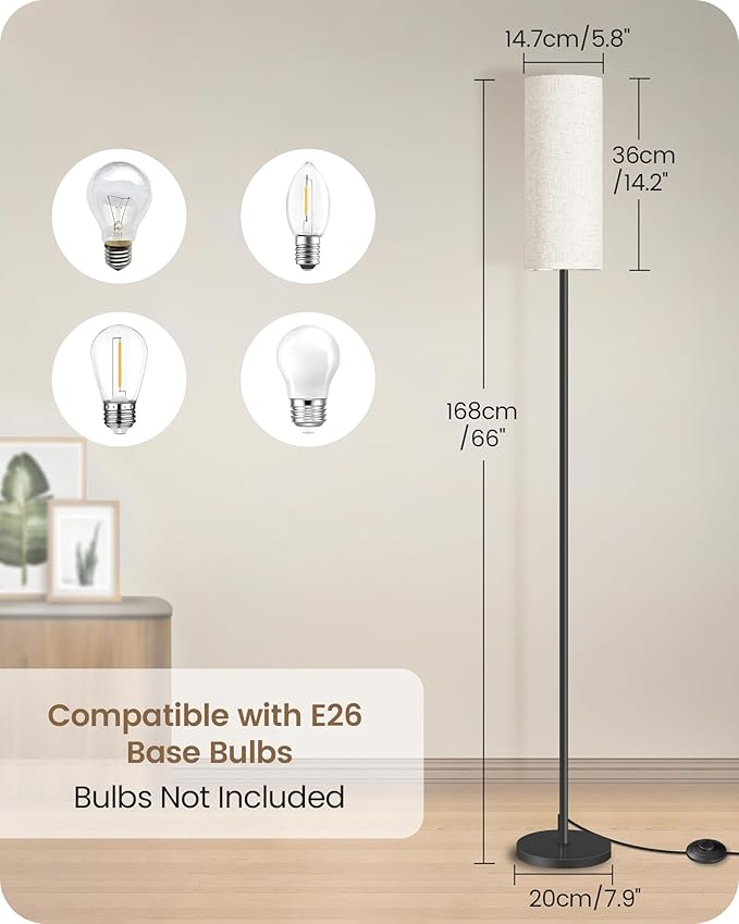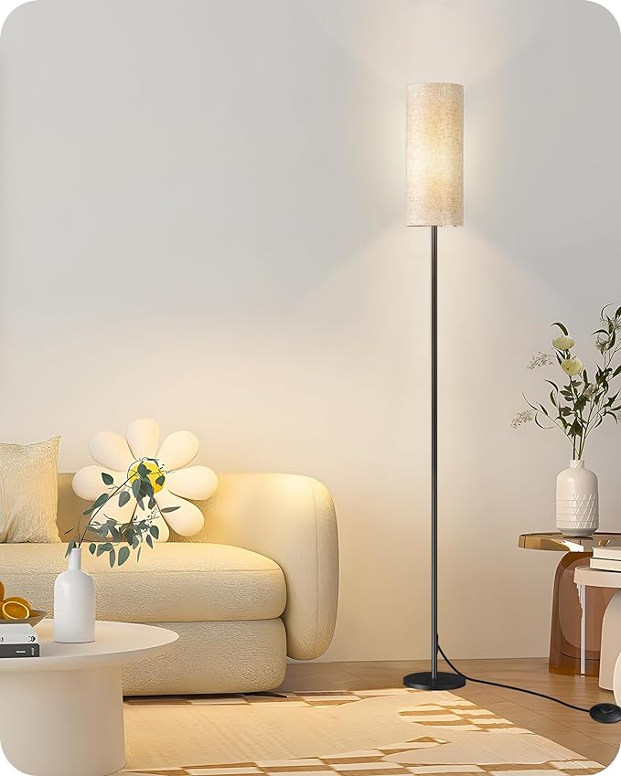 Floor Lamp, Pole Lamp with Foot Switch, Modern Standing Lamp Lampshade, Minimalist Freestanding Lamp (Bulb Not Included), for Living Room, Bedroom Office FCC Listed, Black and Beige E06LD05N