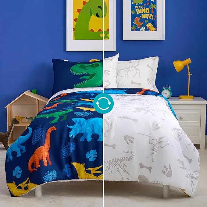 Joiedomi Kid Twin Comforter Set - 5 Piece Dinosaur Bedding Set for Boys/Girls - Super Soft Microfiber Bed in a Bag with Comforter, Sheets, Pillowcase & Sham