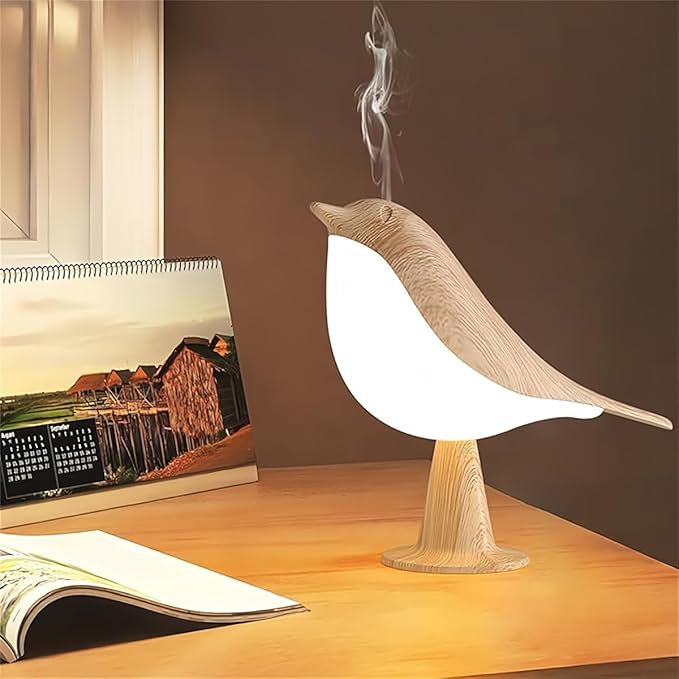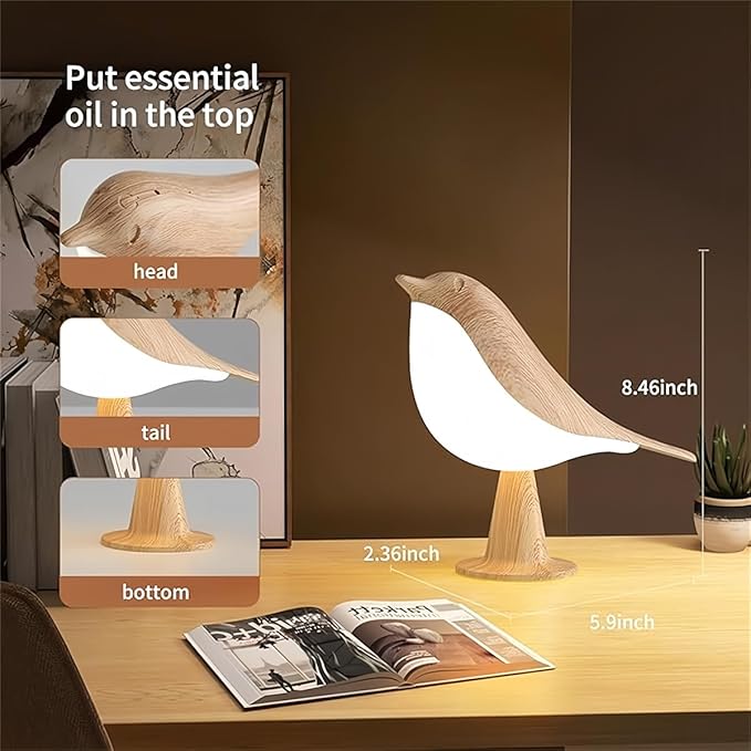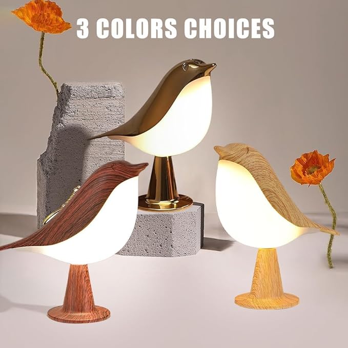 FUYUNXIN Bird Lamp Bedside Lamps - Rechargeable Cordless Table Lamp with 3 Color Temperatures and Touch Sensor - Perfect for Bedroom Nightstand (Maple)