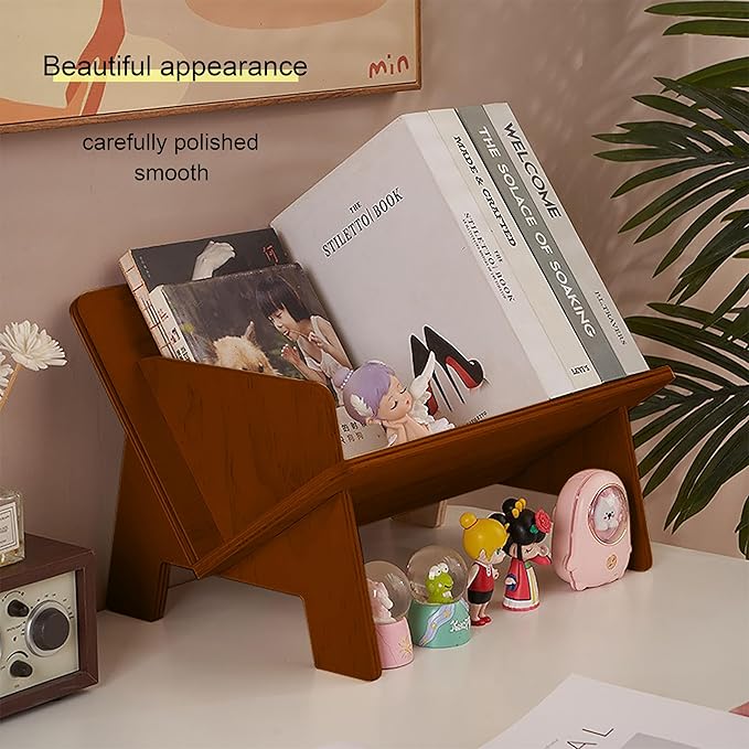 Wood Bookcase in Living Room/Home/Office, Desktop Book Shelf Organizer Bookshelves Storage Rack for CDs/Magazine/Books Display (Light Brown, 13.6")