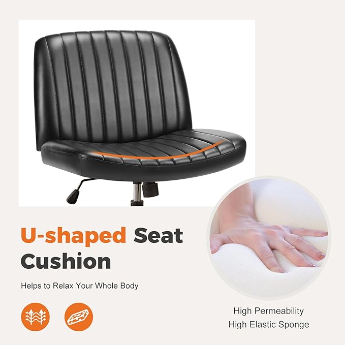 Sweetcrispy Cross Legged Office Chair, Criss Cross Chair Armless Wide Desk Chair No Wheels, Adjustable Swivel Home Office Vanity Chair