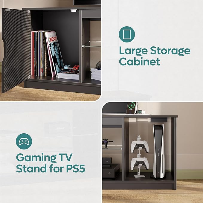 About This 🔊【LED TV Stand with Power Outlets】: Enhance your gaming journey with the Bestier gaming entertainment center. Built-in 2...