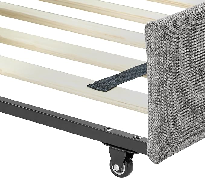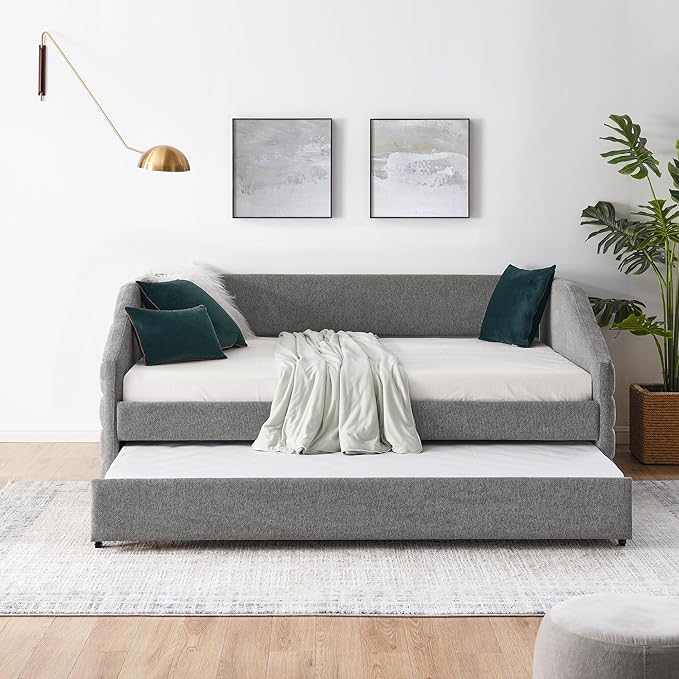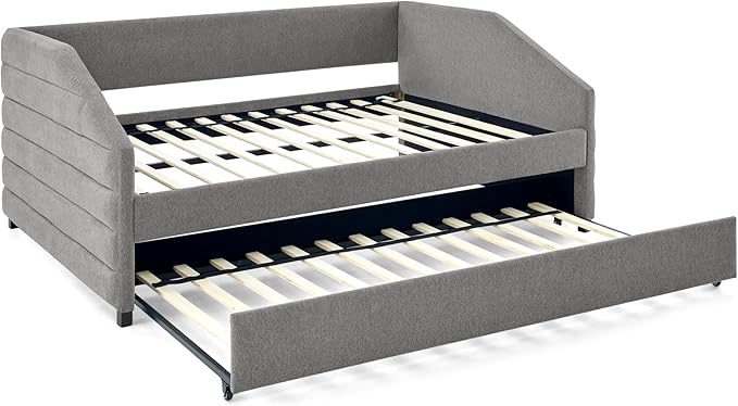 Full Size Daybed with Trundle Linen Upholstered Tufted Sofa Bed,Multi-Functional Day Bed Frame,No Box Spring Needed,for Bedroom, Guest Room,Grey (82.5"x58"x34"