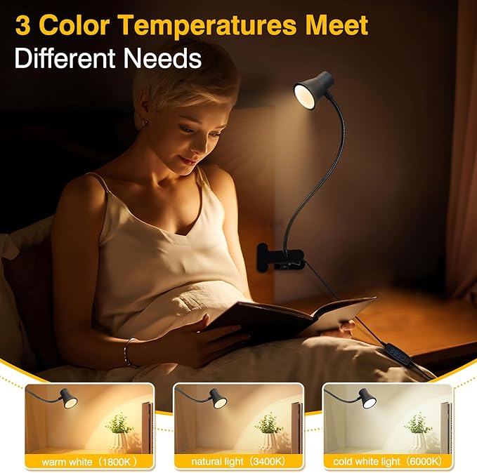 About This 3 COLOR TEMPERATURES AND 10-LEVEL BRIGHTNESS LEVEL: Reading light for bed has 3 color temperature modes: warm white...