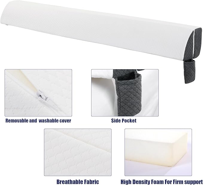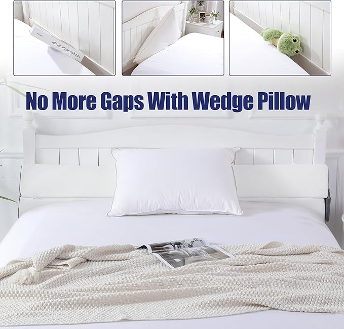 HOMBYS Pillow Wedge for Headboard Gap,Mattress Wedge Gap Filler Queen Size,Bed Crack Pillow,Foam Bed Gap Filler,Multifuctional Headboard Space Filler with Side Pocket,Fill The Gap (0-7")